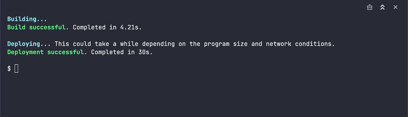 First, we build the the program and confirm we do not have any errors, then finally, we deploy using the deploy button.