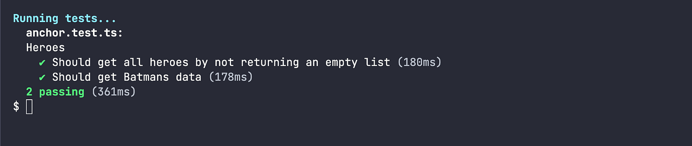 pg.program.account.hero.all()asynchronously fetches all hero accounts stored by the program.Assertions: Using Chai’s