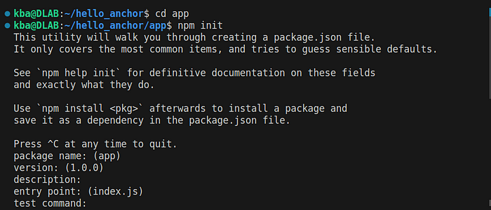 Now, we are going to develop our client to interact with the smart contract. We will create our RestAPI for interaction. For that, go to the app folder and initialize the node project using the command,