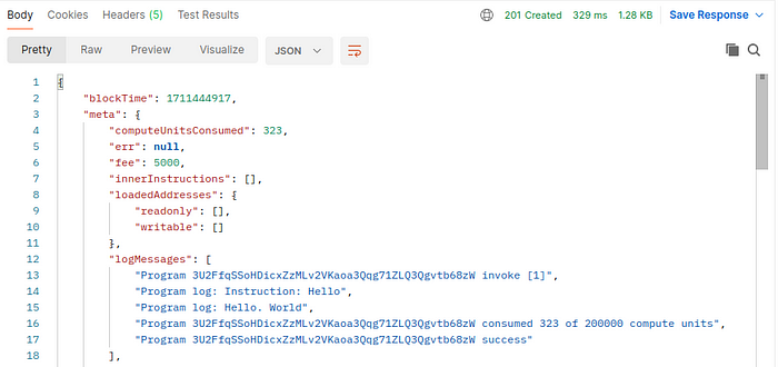 Next, we are going to write another route to get the transaction details of a particular transaction hash. For this, we will be directly using the Solana RPC API method named fetchTransaction. Here will get the Transaction details as the output.