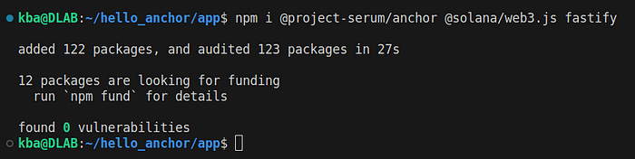 Now we need to install the dependencies, anchor & web3.js for blockchain communication and fastify for building API.